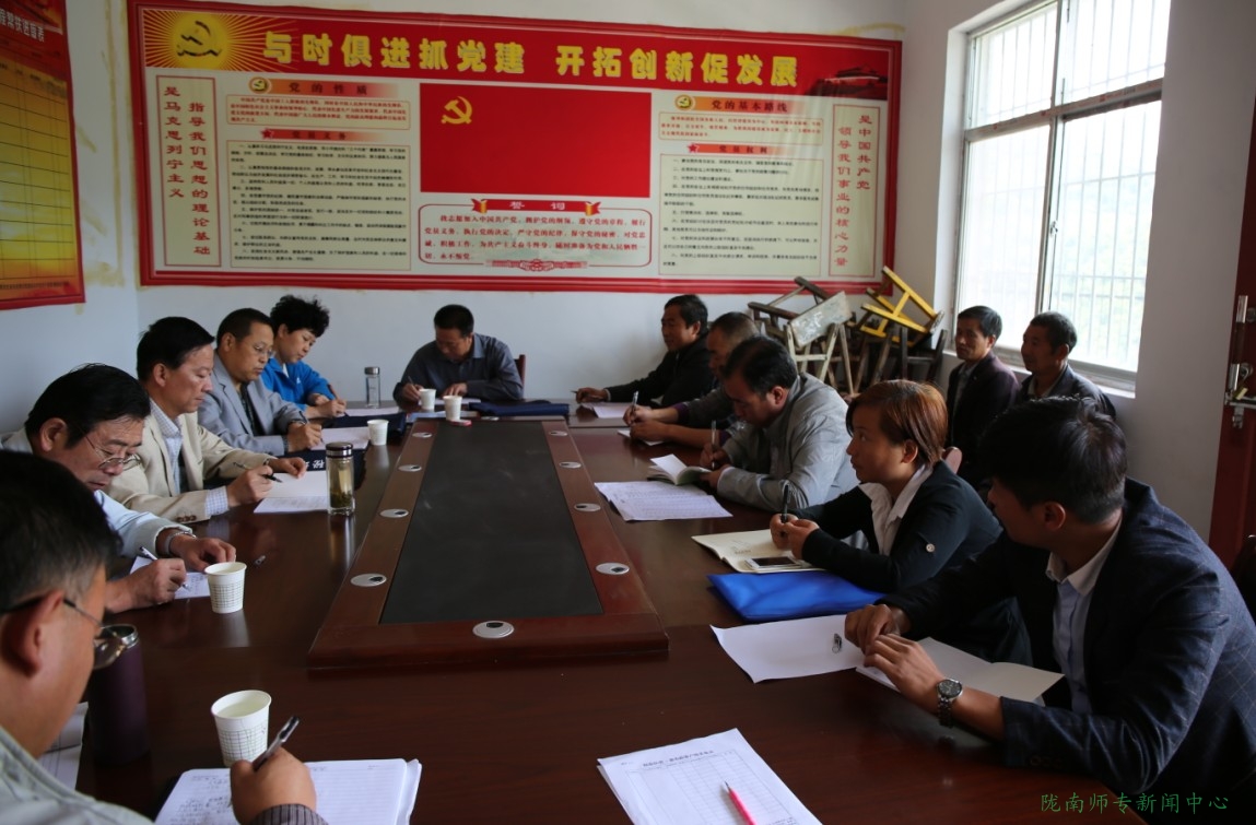 9月12日,学校党委书记司跃宁带领党委副书记、纪委书记王莹成,党委组织部部长蔺兴龙、机关党总支书记白煜辉、保卫处处长尤金生、继续教育学院党总支书记张惠玲等一行10人深入到成县鸡峰镇麒麟村、左山村开展双联工作,并调研精准扶贫工作。