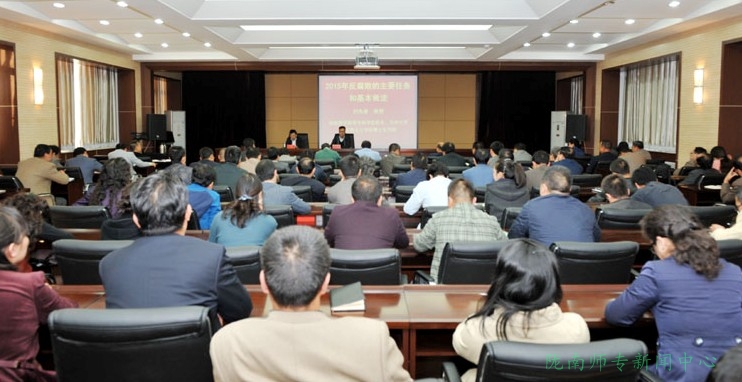 10月15日下午,应天水师范学院邀请,beat365校长、兰州大学马克思主义学院院长、博士生导师刘先春教授在该校党委中心组(扩大)学习会议上作了题为《2015年反腐败的主要任务和基本做法》的辅导报告。该校全体在家党委委员和副处级以上干部参加学习,学习会由该校党委书记陈晓龙主持。