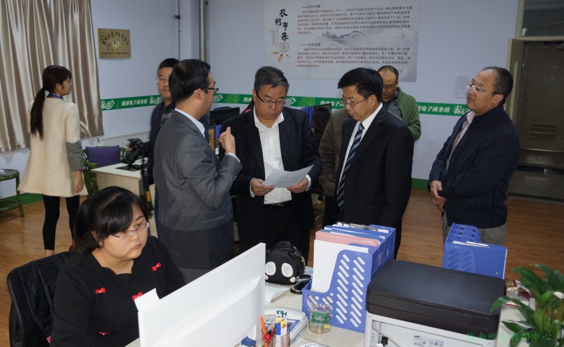 丁光明一行参观了陇南师专电子商务学院的大学生邮局、共青团爱心网店、华昌公司蚂蚁集市、新农人公司农村市集、仓储中心、学生团队创业工作室等教学、运营场所,对电子商务学院的教学设施、办学思路、培训成果给予了充分肯定,当听到他们正备战“双十一”时,丁光明欣喜地说,看到你们提前进入备战模式,祝愿你们趁着今年“双十一”的东风打个漂亮的胜仗,创造出最大的利润。他希望学校在培养农村电商急需人才、服务地方经济社会发展中发挥更重要的作用。(文/唐海宏 图/窦旭峰)