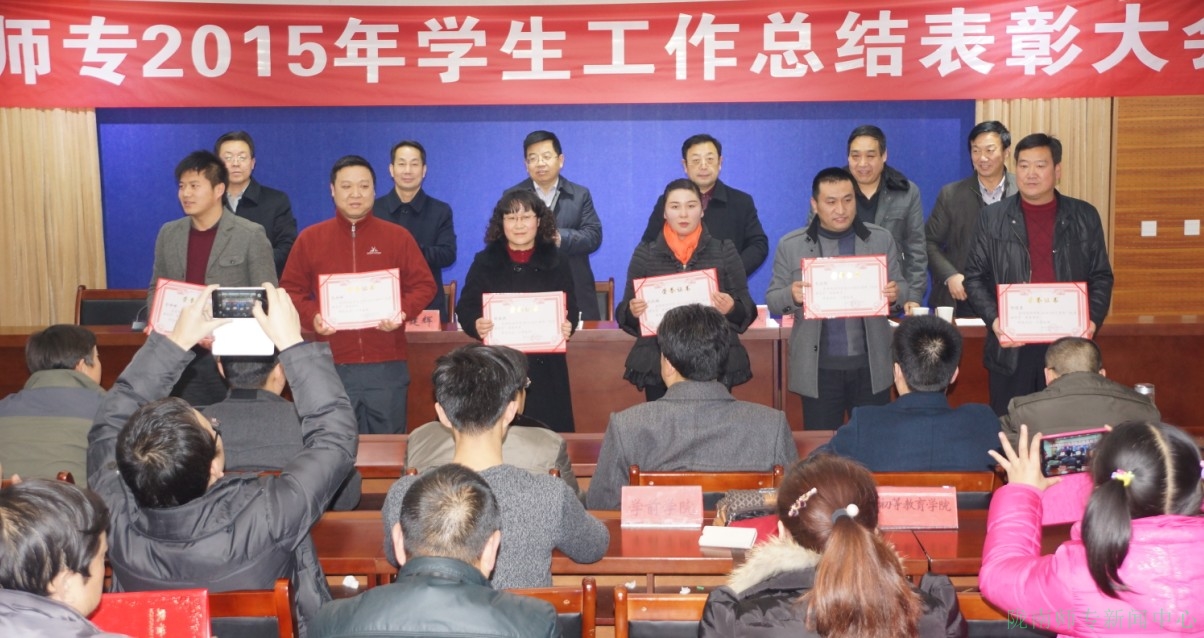 张建辉、王胜青、张勇分别宣读了《关于表彰先进班集体及个人的决定》《关于表彰陇南师专“十佳大学生”的决定》和《关于表彰2015年优秀辅导员的决定》。