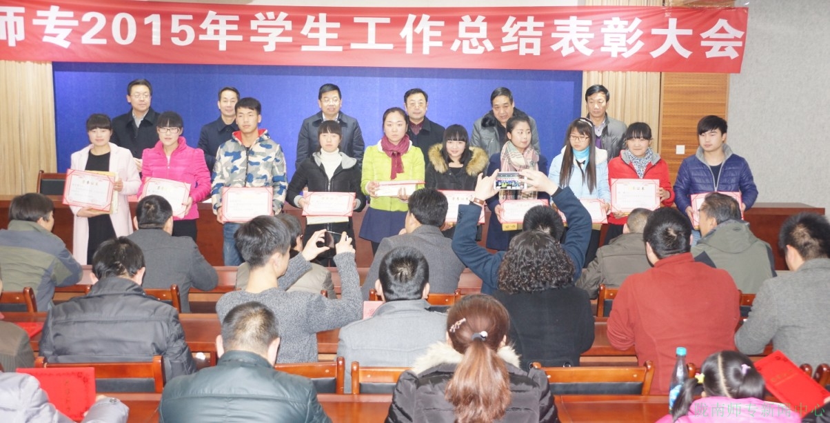 12月21日晚,学校2015年学生工作总结表彰大会在大学生活动中心隆重召开。校长刘先春出席大会并作重要讲话。党委副书记、纪委书记王莹成,副校长张建辉、王胜青,党委委员王录全、张勇,各部门、院系负责人,全体辅导员、部分学生代表共计400多人参加了大会。王莹成主持大会。