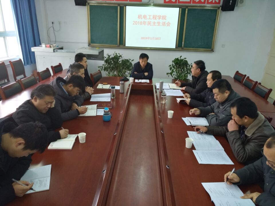 1月10日下午,机电工程学院在7号教学楼111会议室召开2018年度领导班子成员民主生活会。副校长张勇出席会议并讲话,学院领导班子成员、党员干部参加了会议,会议由学院党总支书记王亚文主持。