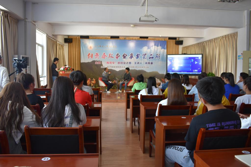 网红青年“鸡司令”尚育康应邀作创青春故事分享。今年22岁的尚育康,是成县陈院镇白马寺村唯一留在村里的年轻人。他原在苏州一家手机配件厂打工,每月有4500元收入。无意间看到央视《致富经》栏目中养殖贵妃鸡的案例后,他不顾家人反对,毅然辞职回到村里养鸡。同时,他也是一名农村题材短视频达人,有着30万粉丝。而他所有视频的灵感和素材都来自于他饲养的2000只鸡的日常。即使留在家乡也努力绽放人生,他的梦想就是带领村里的乡亲共同致富,鼓励大家返乡创业。