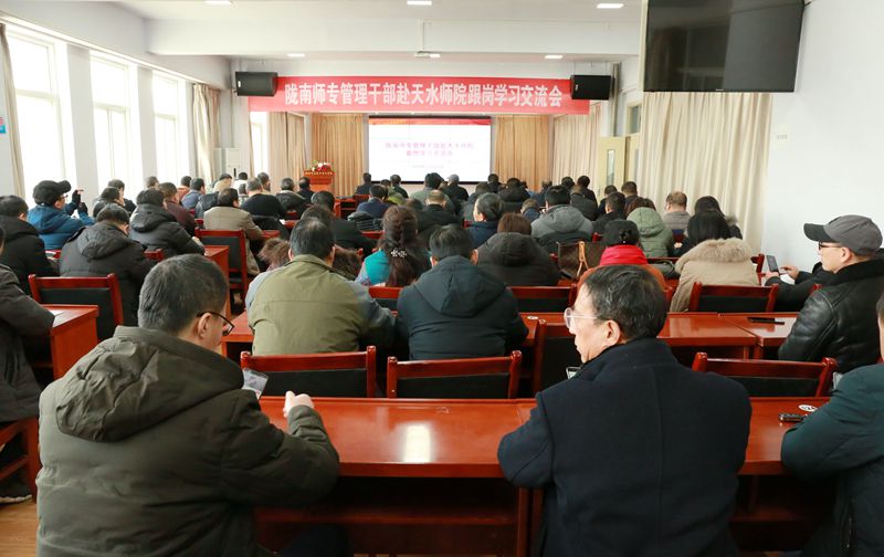 据悉,学校党委选派了30名处室、学院中层干部,分5期到天水师范学院进行跟岗学习。学校管理干部通过参与天水师院的日常管理工作,亲身体验先进管理理念、管理模式、管理方法和管理体系,在跟岗学习中解放思想、开拓眼界、找到差距、把准方向,全面提高了领导能力与业务素养。(文/杨 军 李 曼 图/宋 溦)