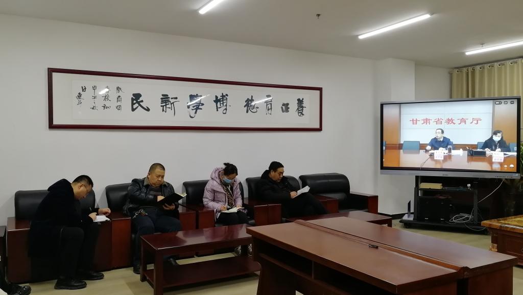 会议还传达学习了全省教育系统全面落实国家和省委、省政府2021年寒假春节期间新冠疫情防控工作要求的十条措施。此次会议通过陇政钉视频会议系统召开,省教育厅新冠疫情联防联控工作领导小组各专责组负责同志在主会场参加会议,14个市(州)、兰州新区、86个县(市区)教育行政部门、各高等学校、厅直属单位(学校)主要负责同志在分会场参加会议。