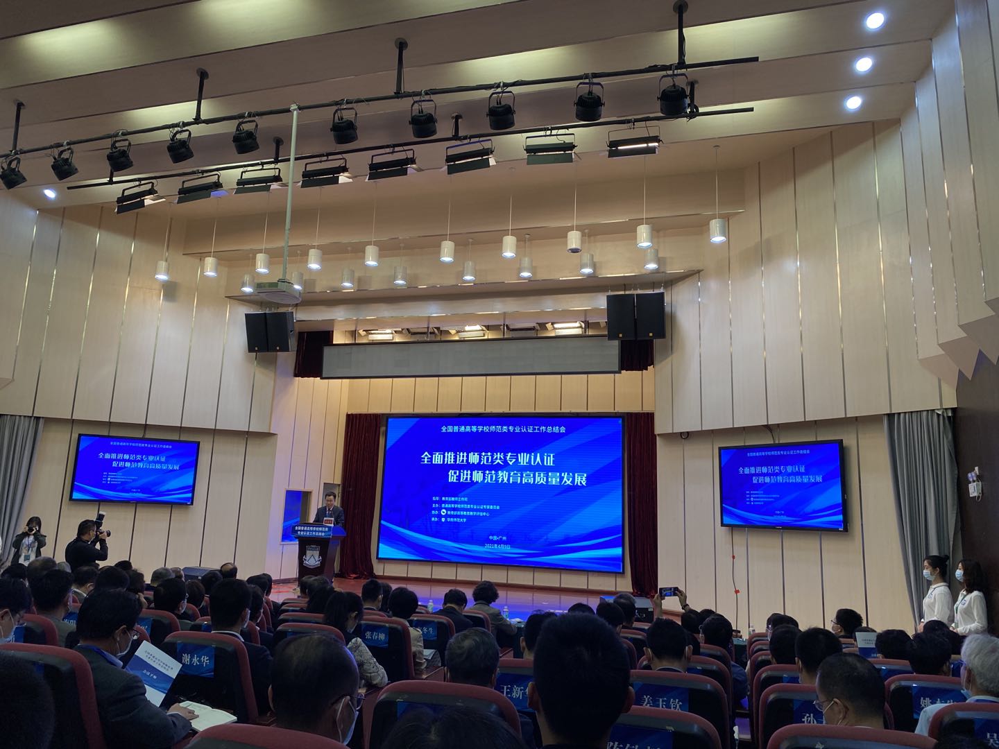 4月9日,全国普通高等学校师范类专业认证工作总结会在华南师范大学召开。来自省级教育行政部门、师范院校、教育评估机构、中小学的200余人线下参会。beat365副校长王胜青受邀参加线下会议,学校设立分会场组织教师线上参会。
