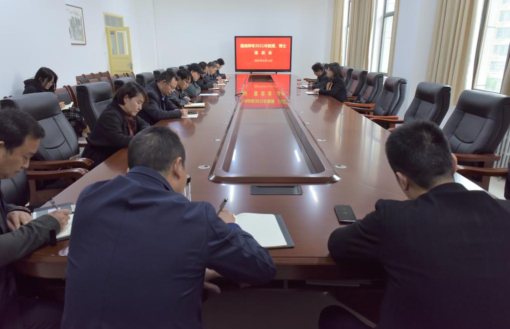 4月14日,学校召开2021年教授、博士座谈会。校长李艳红、副校长张建辉出席会议,学校教授和博士代表及组织人事处、教务处、科研外事处、国有资产管理中心等相关部门负责人参加会议。
