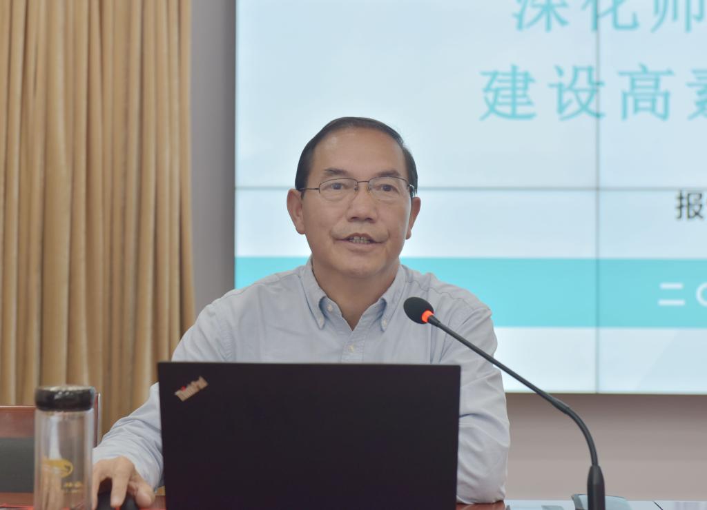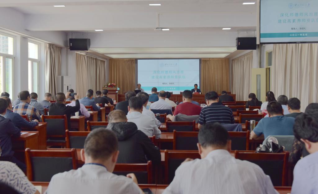 会上,张文礼教授从古今中外思想家、教育家对师德问题的经典论述切入,阐释了“师德”“师风”的概念,并重点就近年来习近平总书记关于“三个牢固树立”“四有”好老师“四个引路人”“四个相统一”“六要”等关于师德师风的重要论述和教育部等7个部门印发的《关于加强和改进新时代师德师风建设的意见》等文件精神作了详细讲解。他指出,新时代,党中央对师德师风建设的重视和要求达到了新高度,把师德师风作为评价教师队伍素质的第一标准,广大教师要着力于以德立身、以德立学、以德施教、以德育德,不断涵养高尚师德,努力做“四有好老师”。当前,国家建立了制度规范体系、形成了治理工作机制,师德师风建设被纳入现代教育治理体系范畴,构筑起了监管“防火墙”和纪律“红线”。他还重点介绍了当前师德师风治理的三项重点工作:一是持续在严管上下功夫。督促各地各校制定完善师德负面清单和违规处理办法,狠抓违规问题的处理;二是持续在宣传教育上出实招。强化实效,厚植情怀,强化教师“四史”学习教育。三是持续在责任落实上见真功。即要做到夯实责任、狠抓落实和协调联动。