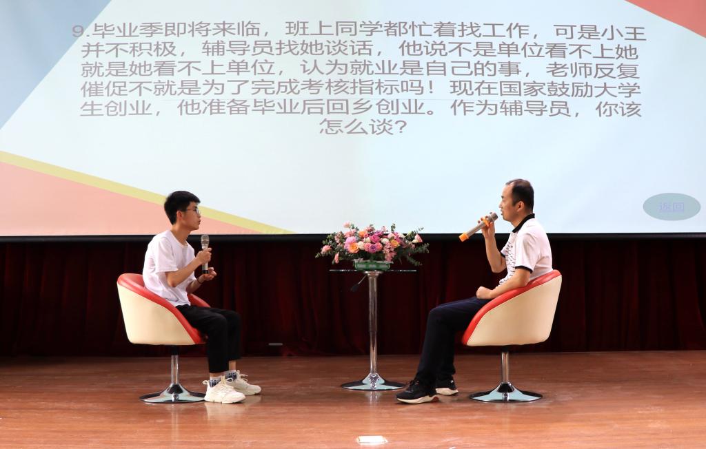 5月19日,学校在教师培训中心多功能厅举行2021年辅导员素质能力大赛决赛,来自13个二级学院的10位辅导员参加了最后的决赛。副校长张勇、特聘教授温宝麟、教务处、学生处、督导室、后勤处、团委负责人以及各学院分管学生工作领导、辅导员、学生代表120多人到场观摩比赛。