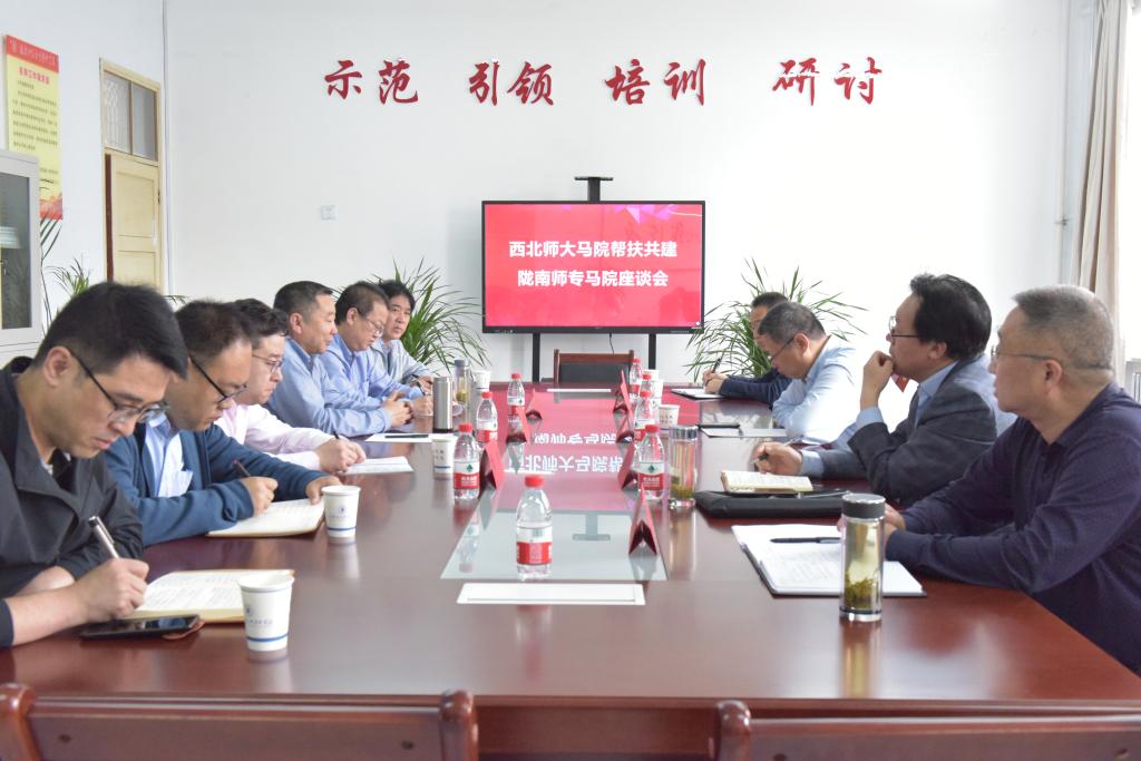 5月20上午,西北师大马克思主义学院院长王宗礼教授、副院长孙健教授一行6人在beat365甘肃省思想政治理论课马勤学名师工作室召开帮扶共建座谈会。beat365党委书记余学军、副校长王胜青,教务处和马克思主义学院负责人参加了座谈会。座谈会由王胜青主持。