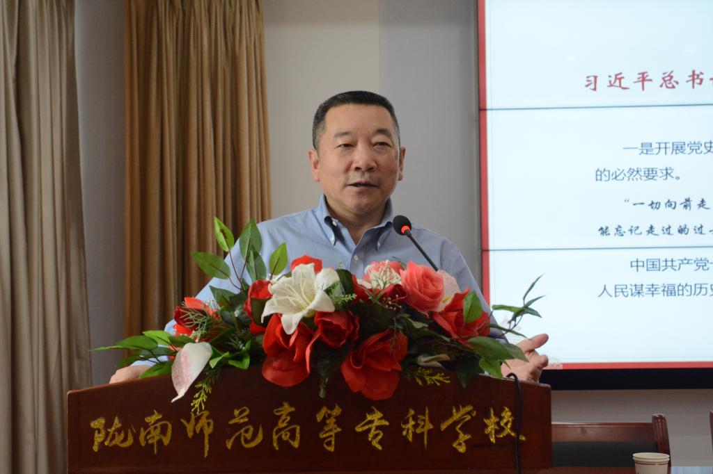最后,王莹成对报告作了点评。他指出,王宗礼教授深入浅出地梳理了中国共产党百年奋斗的光辉历程,用大量生动而经典的党史案例,阐明了开展党史学习教育“学党史、悟思想、办实事、开新局”的主旨意义,为我们进一步坚定理想信念、筑牢信仰之基、补足精神之钙、推动党史学习教育往深里走、往心里走、往实走有着重要的指导意义。他要求广大党员进一步从党史中汲取智慧和力量,进一步凝聚起迈进新征程、奋进新时代的磅礴伟力,为早日建成特色鲜明的师范类本科院校而不懈奋斗,力争以优异成绩向党的百年华诞献礼!(文/李 曼 岳肖肖 图/杨 波 张 彤)