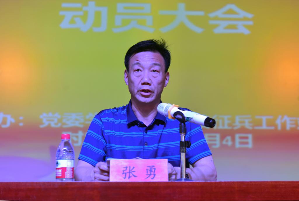 张勇对上半年征兵工作成绩给予肯定,并对下半年征兵工作提出四点要求:一要增强责任感和使命感,按照学校征兵工作方案要求,认真组织实施,精心安排部署,增强大局意识、责任意识,从讲政治的高度,协调配合不推诿,全力做好服务,按时保质保量完成征兵任务。二要加强征兵宣传力度,扩大征兵宣传的覆盖面和渗透性,增强征兵宣传的针对性和实效性,确保把征兵工作的意义、政策、具体要求、奖励制度及学校出台的各项征兵政策传达到每一位在校生和应届毕业生。三要强化措施、狠抓落实,各学院党政负责同志要亲自部署、亲自研究、主抓落实。对符合应征条件的学生特别是应届毕业生要逐一动员、逐一登记。四要及时协调解决征兵工作中的矛盾和问题,突出服务质量。对工作实绩突出、完成任务出色的学院和个人,予以表彰奖励;对不认真履职尽责、或因工作不力造成不良后果的,按规定严肃追究单位和领导责任。