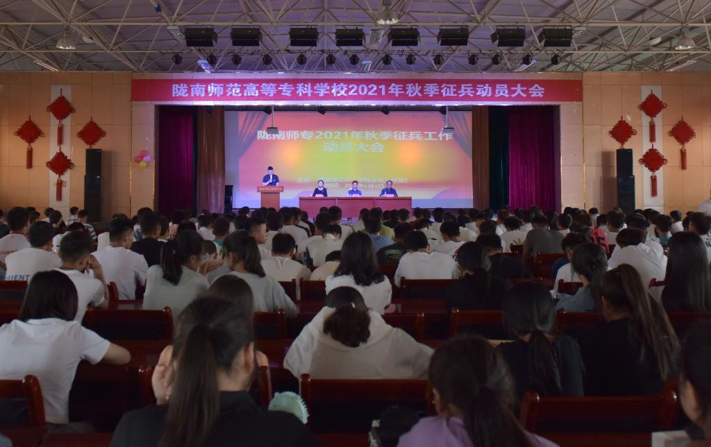 学生处副处长武燚宣读了《陇南师专2021年征兵工作实施方案》。学校征兵工作领导小组办公室主任师良对上半年征兵工作做了总结。