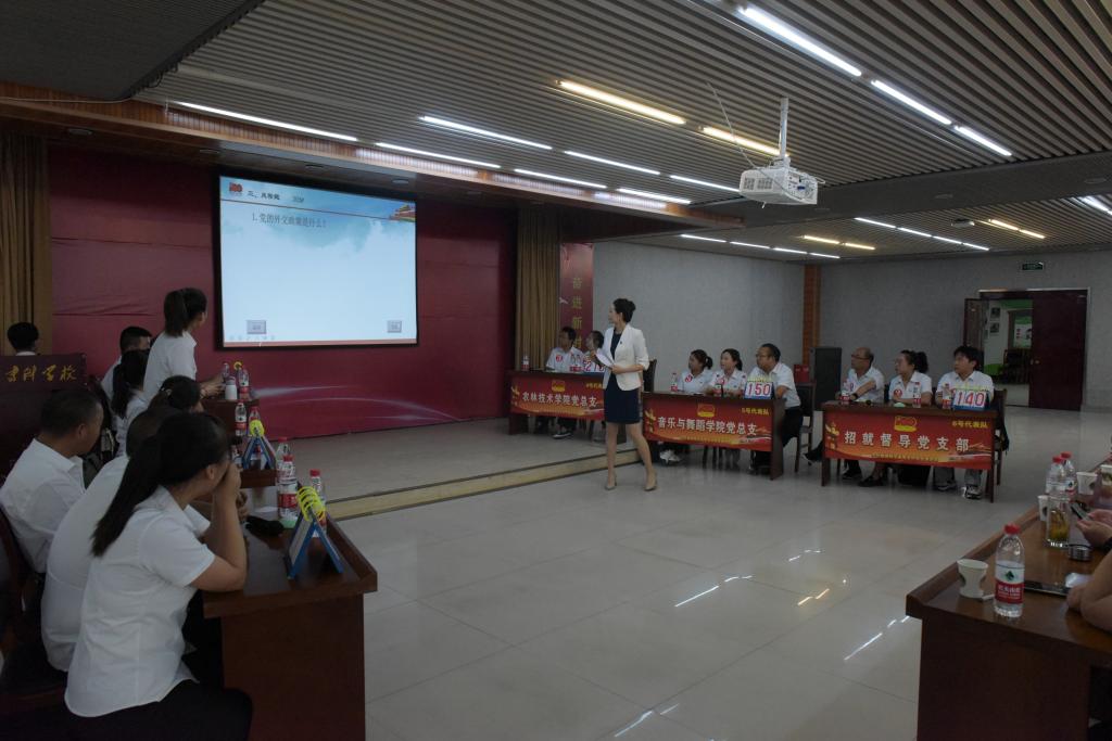 “中国特色社会主义的根本任务是什么?”“中国共产党在中国革命中战胜敌人的三个主要法宝是什么?”……6月21日,一场别开生面的党史知识竞赛在大学生活动中心举行,来自学校的6支基层党组织代表队的选手竞相回答主持人提出的题目,台下的观众也积极加油,掀起一股比学习、比理论的热潮。学校党委委员、副校长张建辉、张勇及党总支书记、教师和学生党员代表、入党积极分子代表到场观赛,为选手加油鼓劲。