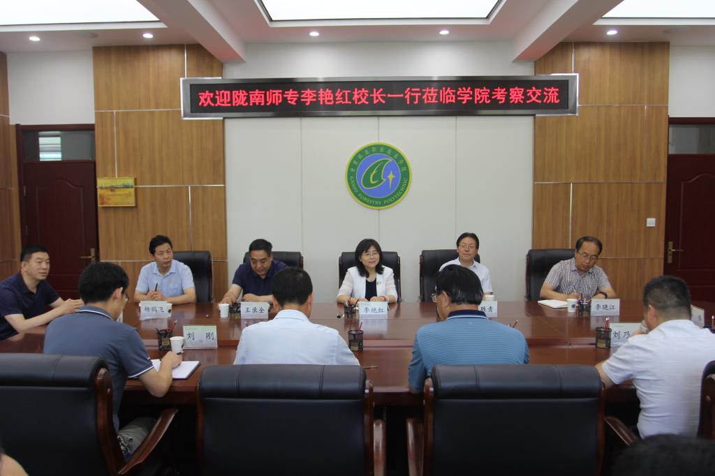 7月5日,校长李艳红、副校长王胜青、王录全带领学校办公室、教务处(教师发展中心)、后勤处、学生处等部门负责人赴甘肃林业职业技术学院考察交流并召开座谈会。甘肃林业职业技术学院院长陈逸平,副院长罗广元、刘乃君、刘刚出席座谈会,教务处(教师发展中心)、学生处(保卫处)、后勤处、本科部等部门负责人参加了会议。
