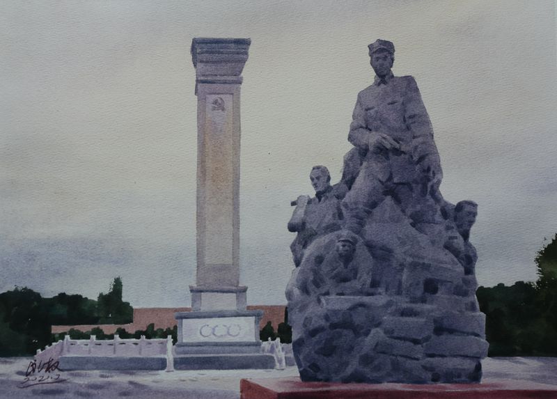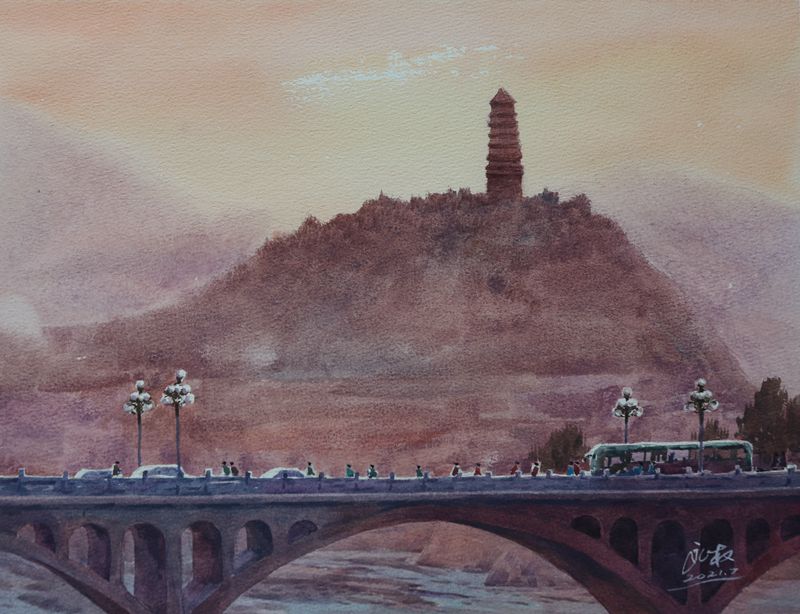 张永权教授历时30余天,将党史从书本中搬到水彩画上,用饱含家国情怀的22幅画作,为学校开展党史学习教育提供了具有历史厚度和情感温度的鲜活案例,让学习教育既“走新”又“走心”。
