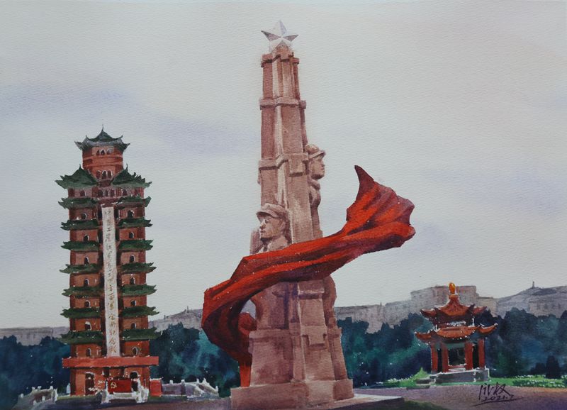张永权教授水彩画系列作品以我省陇南、甘南、庆阳,宁夏固原、陕西延安、浙江嘉兴等地的革命遗址、纪念馆为创作题材,大体以红军在甘陕等地的活动为顺序,还原发生在陇南等红色热土上的红色革命历史,展现当年开展革命的艰辛,传承和弘扬爱国主义精神,宣传推广红色福地的风土人文精神,以鲜明的红色文化印记,抒发了自己对浴血奋战革命先辈们的缅怀、追思和感恩之情以及对艺术的挚爱之情。