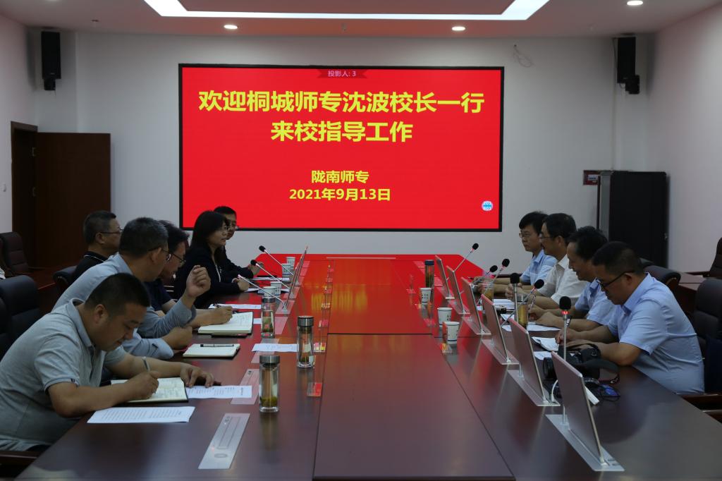 9月13日,桐城师范高等专科学校校长沈波一行来beat365调研。党委书记余学军、校长李艳红、副校长王胜青和相关学院、部门负责人参加了调研座谈会,余学军主持会议。