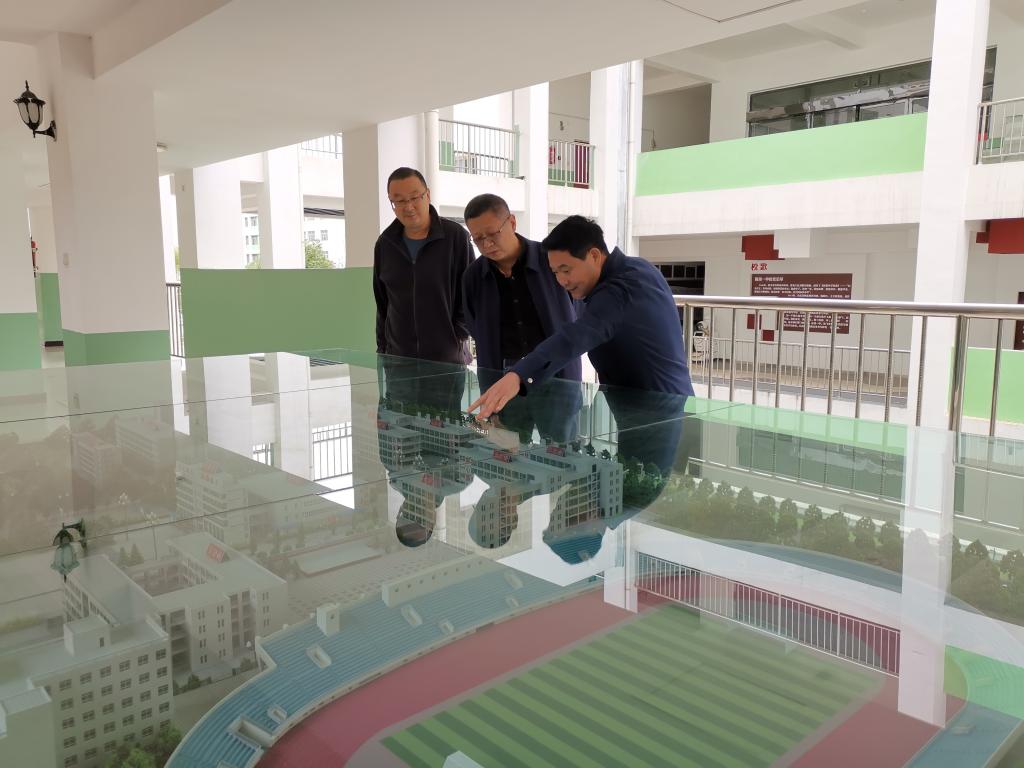 余学军在许邦兴、杨文新等校领导陪同下参观了学校校园。