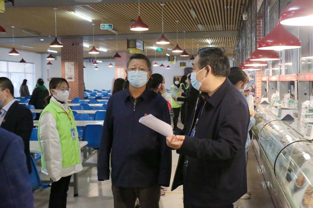 为加强学校食堂安全监管,11月1日,党委书记余学军、副校长王录全带领宣传统战部、教务处、学生处、后勤处、保卫处、团委等部门负责人深入各学生餐厅,检查了解疫情防控工作各项规定落实情况。