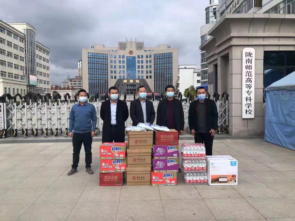成县德信商贸有限责任公司、陇南市华龙恒业农产品有限公司、陇南鹏龙商务有限公司、成县秦昶驾校、中国银行成县支行、甘肃陇小南电子商务有限公司、成县优点食品有限公司及爱心人士镡子轩、镡东东捐助了一次性口罩、84消毒液、免洗洗手液、湿巾、矿泉水、面包和方便面等疫情防疫物资,用实际行动助力学校疫情防控工作,展现了社会责任感和大爱精神。在疫情防控当前,多家企业、数名爱心人士播洒的爱心善举,为学校疫情防控工作提供了有力的物质支持和帮助,温暖了我们全体师生的心田,为学校打赢疫情防控阻击战注入了信心和力量!(李 曼