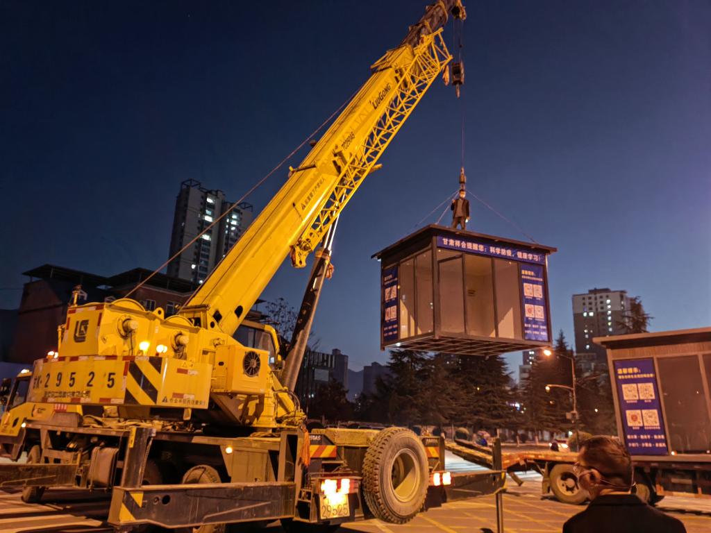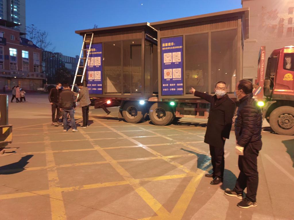 11月8日下午6点左右,一辆大卡车装载着两个移动箱式房来到beat365疫情防控检测点。