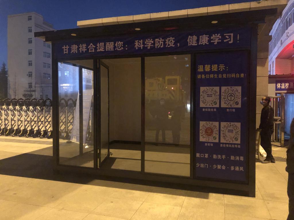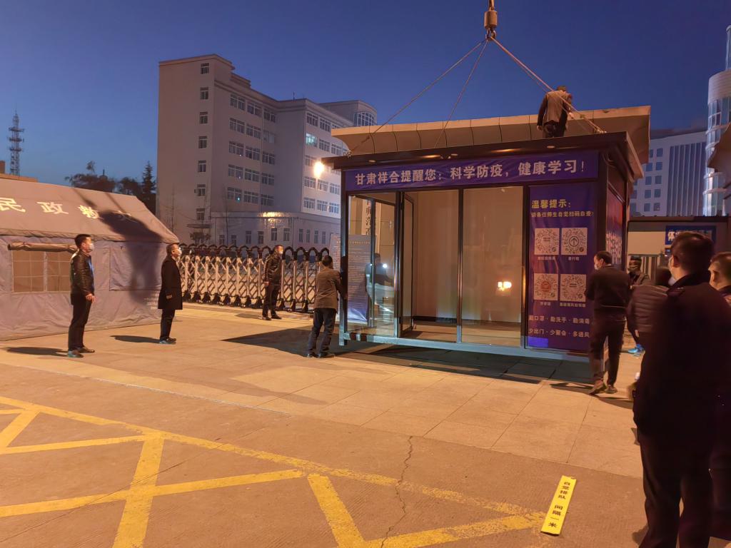 “这几天降温夜间非常寒冷,看到我们学校这里的执勤人员坚守在一线特别辛苦,我们决定给学校捐赠两个移动箱式房,让执勤人员在寒冬里也可以感受到温暖,我们一定可以早日打赢疫情这场没有硝烟的战争。”甘肃祥合建设集团有限公司董事长兼总经理王中正说,“疫情发生后,甘肃祥合建设集团有限公司一直都很关注,总想着能做些事情,看到学校执勤人员工作的场所只是一个简易帐篷,既不安全也不保暖,所以决定捐赠两个移动箱式房给执勤人员使用。”