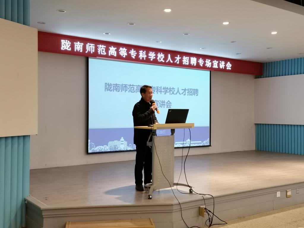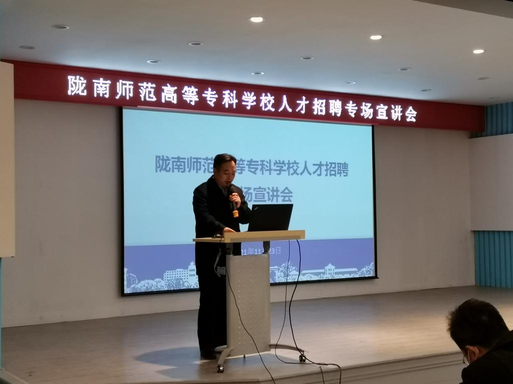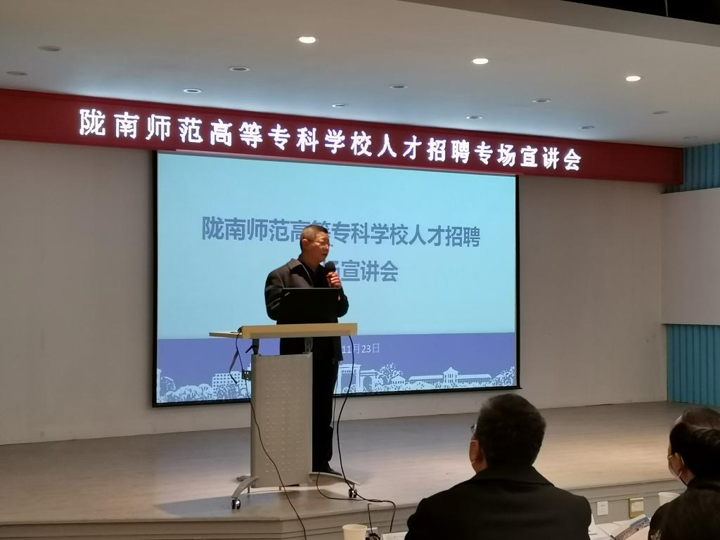 1123日,党委书记余学军,副校长张建辉,组织人事处负责人赴西北师范大学开展人才引进招聘工作。专场宣讲会在西北师范大学学生发展中心举行。西北师范大学党委书记张俊宗、校长刘仲奎,党委常委、党委宣传部部长、副校长邓小娟会前分别与余学军一行就两校合作事宜和人才引进工作进行了会谈。西北师大教务处、招生就业处、相关学院就业工作负责人和169名2022届研究生参加人才引进专场宣讲会。会议由西北师范大学招生就业处处长郭建东主持。