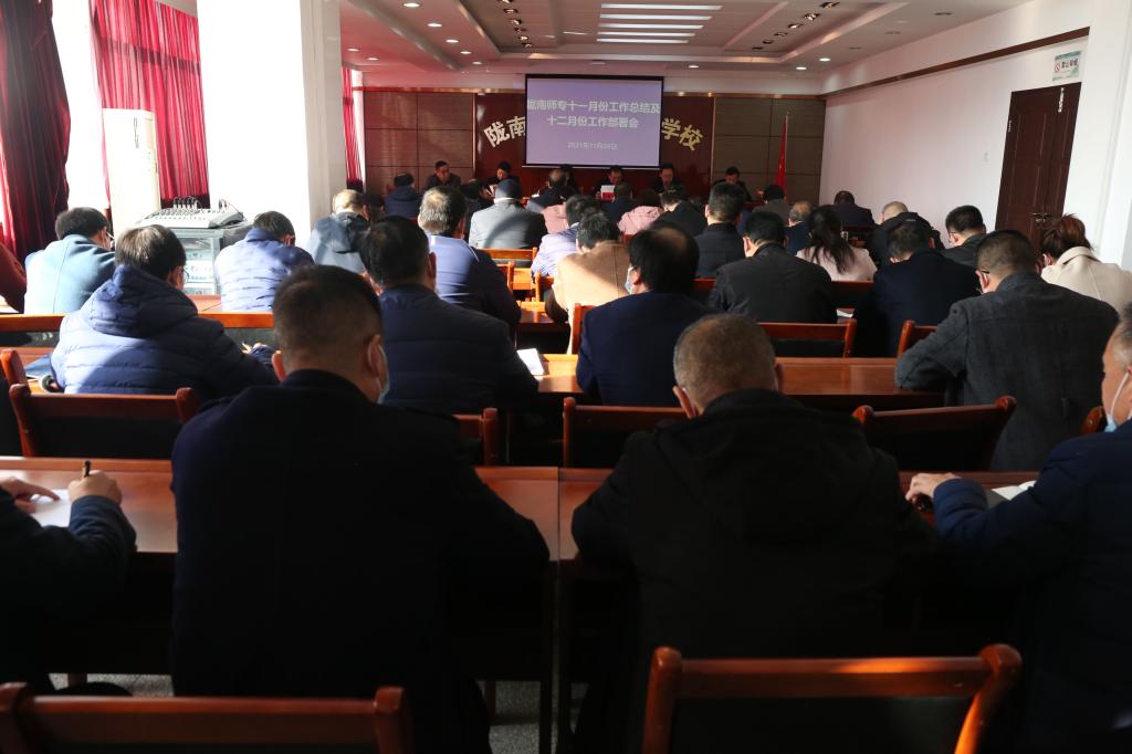 11月24日,学校召开十一月份工作总结及十二月份工作部署会。校长李艳红主持会议并讲话,党委副书记王莹成,副校长任永峰、王胜青、王录全、张勇,各处室负责人、各党总支书记、学院院长参加了会议。