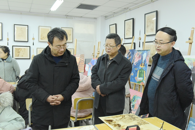 检查组参观初等教育学院烙画工作室