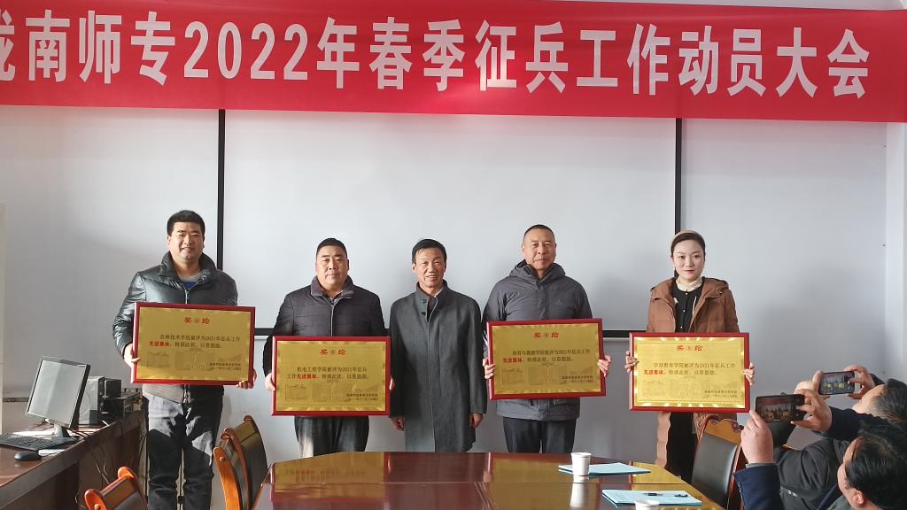 张勇对2021年征兵工作成绩给予肯定,并对2022年春季征兵工作提出四点要求。一要继续提高政治站位,增强大局意识、责任意识。全力做好征兵宣传,加大征兵工作的投入,确保完成2022年征兵任务。二要落实学院征兵工作主体责任,精准把握每个有意愿入伍学生的情况,把征兵政策和精神讲深、讲透、讲到位,确保学生完全知晓,做好学生引导。三要增强工作针对性、操作性和实效性。尤其做好“双合格”青年后续工作,春季征兵主要时间在寒假,要以2019级毕业生为主要对象,将征兵政策宣讲到位。四要做好假期征兵服务工作,加强跟踪问效,提前谋划学校征兵政策修订,通过线上解决假期入伍学生遇到的困难和问题。