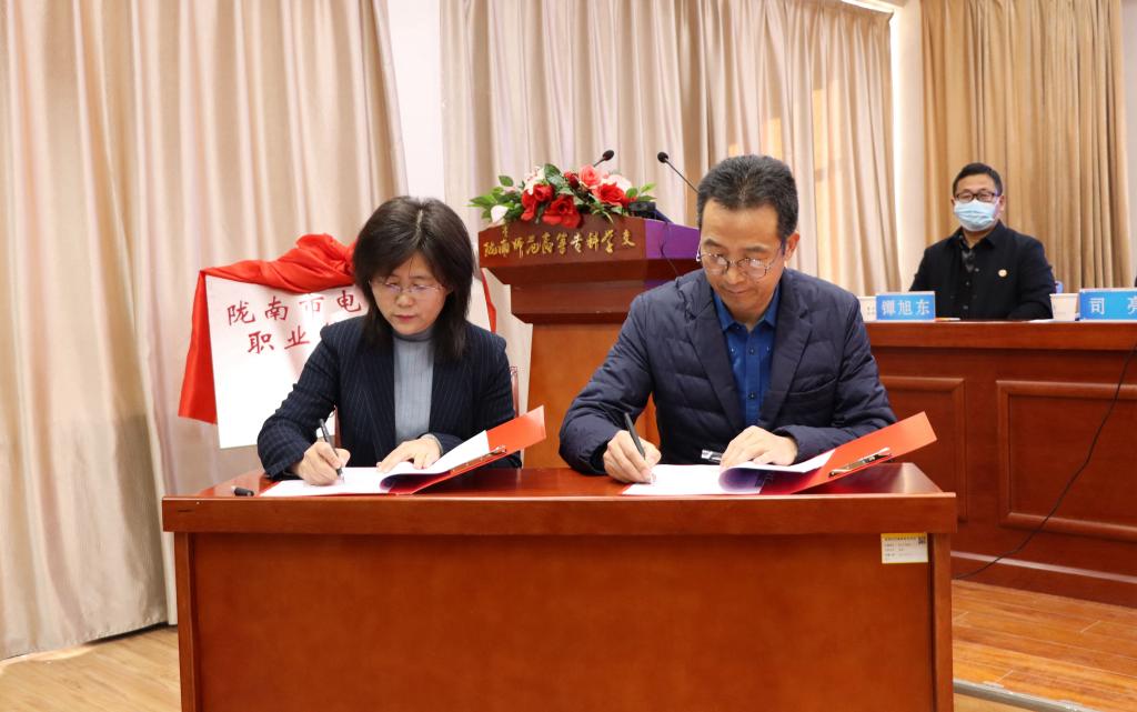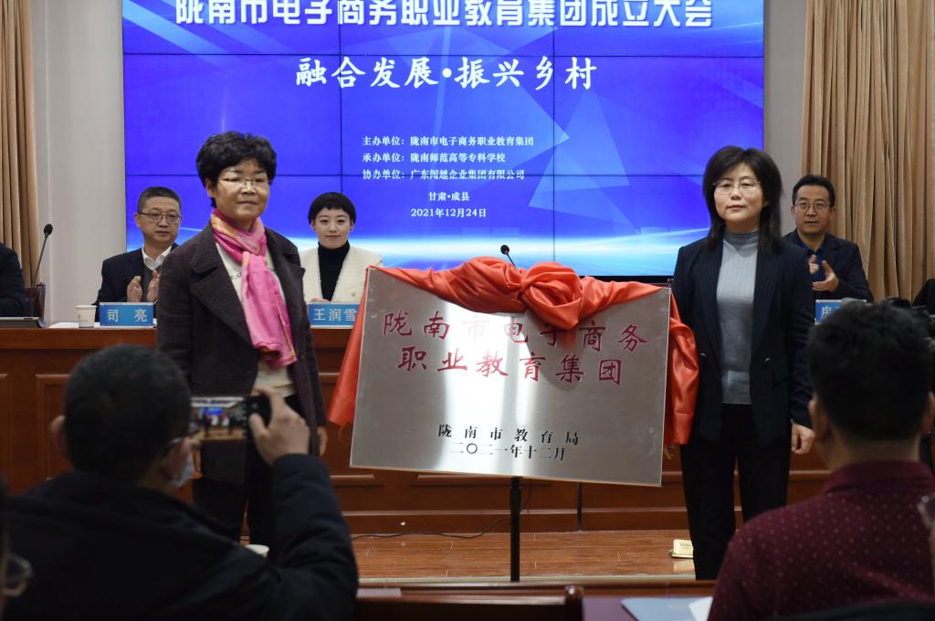 李艳红和屈兑梅为“陇南市电子商务职业教育集团”揭牌
