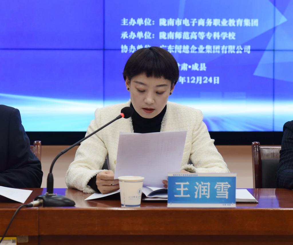 陇南市电子商务发展局副局长王润雪宣读《陇南市电子商务职业教育集团机构成员名单》