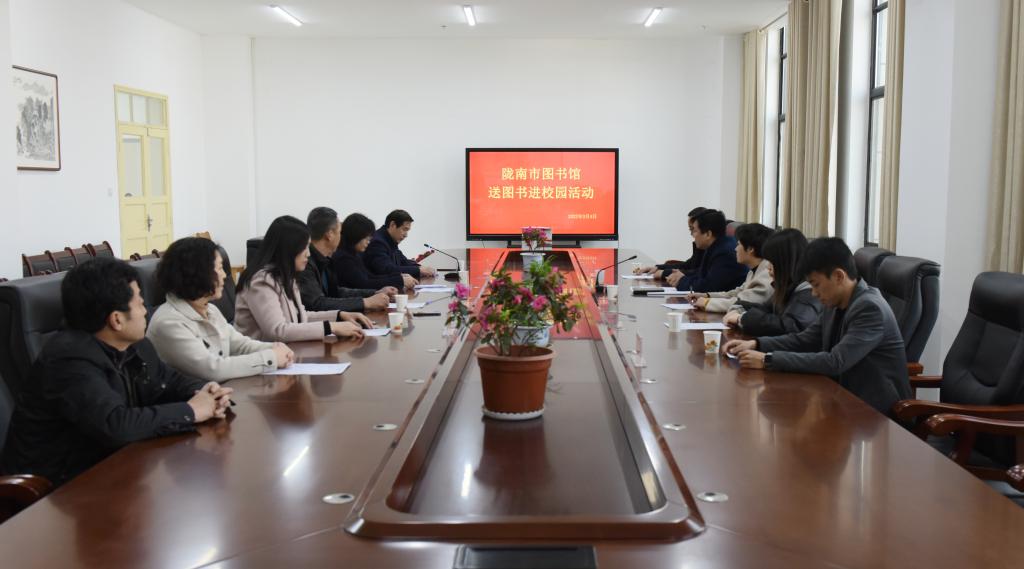 3月4日,陇南市图书馆向beat365捐赠图书。陇南市图书馆副馆长武晓巍一行,校长李艳红,学校图书馆负责人及工作人员参加了捐赠仪式。
