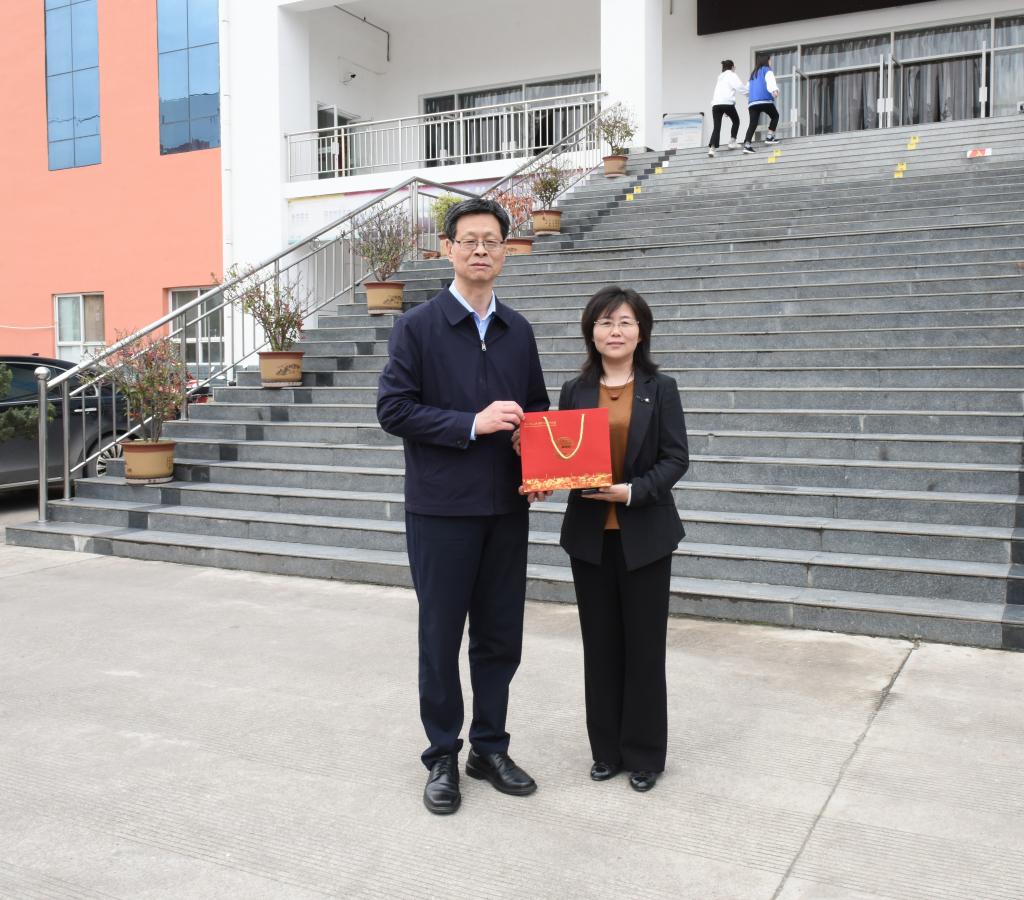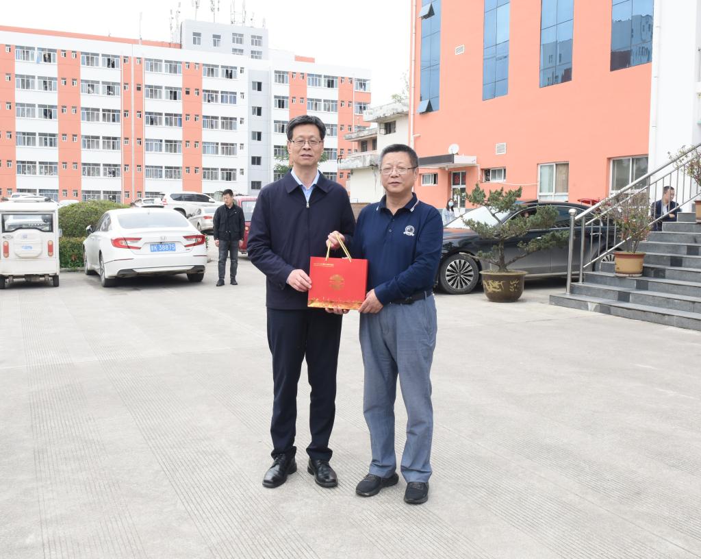 刘仲奎向学校领导赠送了西北师范大学建校120周年纪念品。(文图/李 曼)
