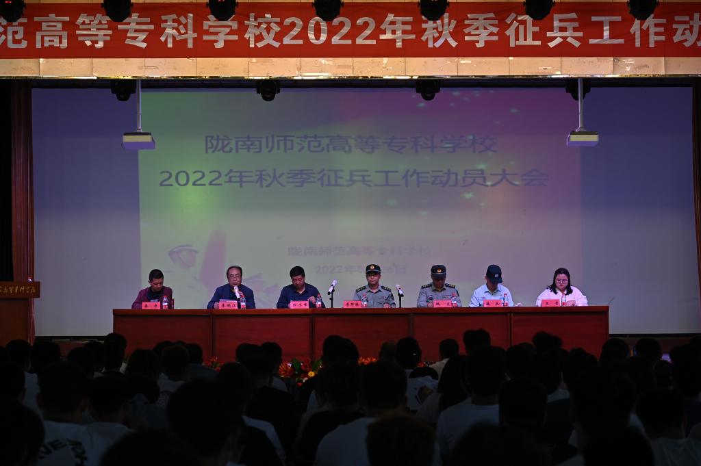 5月26日,学校在北校区礼堂召开2022年秋季征兵动员大会,陇南军分区党委常委、动员处上校处长李军林,陇南军分区动员处参谋魏兵,成县人民武装部政委姚宏,学校征兵工作领导小组副组长、副校长任永峰、党委学工部、招生就业处、团委负责人、各学院分管征兵工作领导、征兵专人、学生代表400多人参加会议。会议由党委学工部部长、校征兵工作站站长李晓江主持。