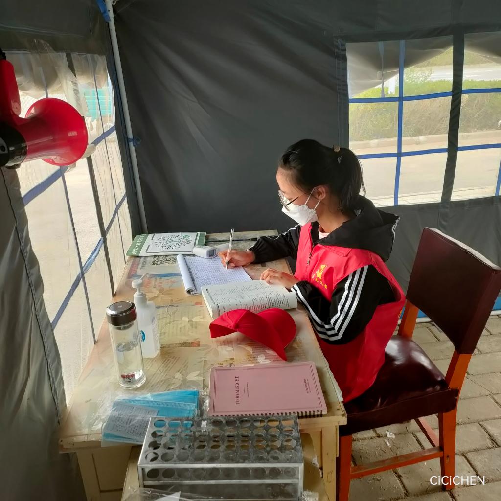 “虽然我不是白衣天使,但我有幸身穿志愿服。在这场抗疫的考场里,我们青年大学生志愿者有责任、有义务为守护家乡父老生命安全和身体健康贡献一份力量。”数信学院2021级小学数学教育2班张正盼同学说。(组织人事部)