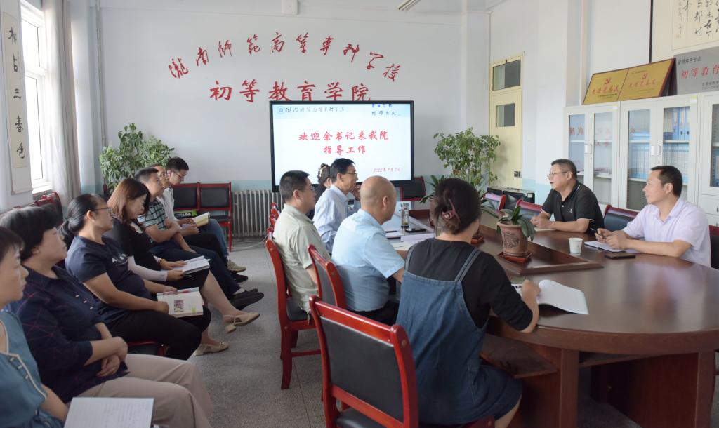 97日下午,党委书记余学军在学校办公室负责人的陪同下,深入初等教育学院调研指导工作。学院领导班子成员及部分教职工参加了会议,会议由院长张永明主持。