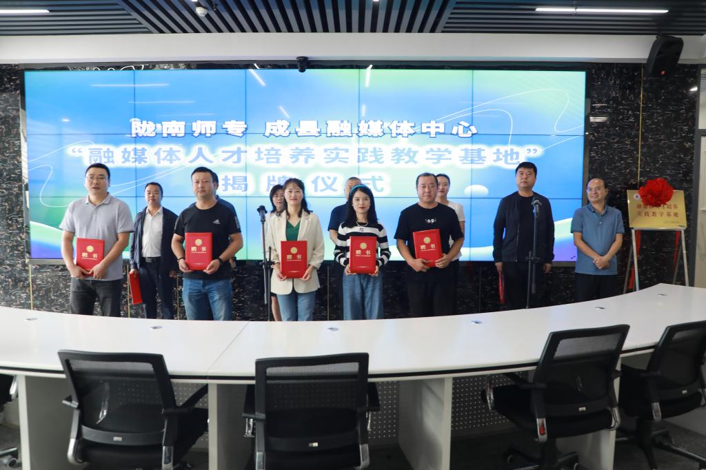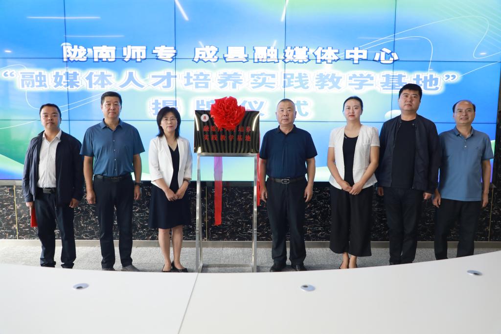 9月9日,学校“融媒体人才培养实践教学基地”在成县融媒体中心揭牌。beat365校长李艳红,副校长任永峰,成县人大常委会党组成员任育新,政府副县长梁月红以及县委外宣办、网信办负责人和县融媒体中心全体干部职工参加揭牌仪式。