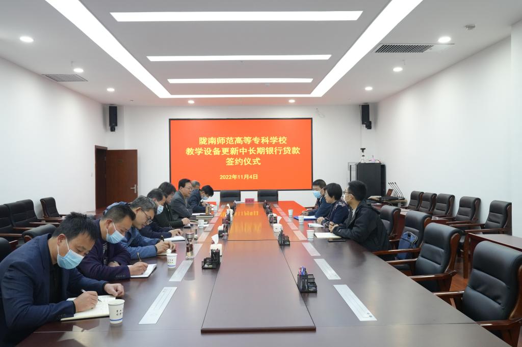 会上,学校与省建设银行陇南市分行签订了《陇南师专教学设备更新中长期贷款合同》。
