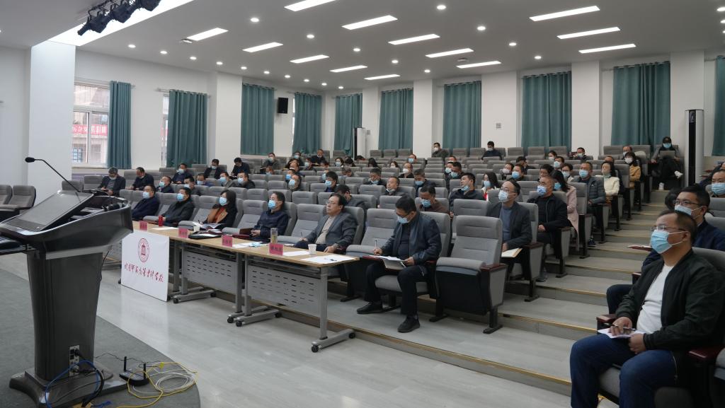 党委书记余学军及学生代表通过电脑、手机等形式在线收看了报告会。党委副书记、校长李艳红,党委委员、副校长张建辉、任永峰、王胜青、王录全,党委委员、纪委书记、监察专员镡旭东及学校中层干部、思政课教师代表在学校分会场集中收看了报告会。