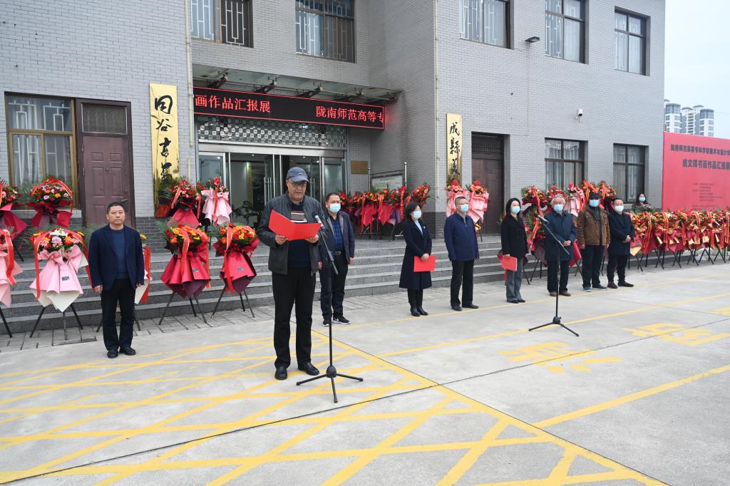 仪式上,李艳红致辞。她代表学校对作品汇报展的开展表示热烈祝贺,对主办、承办单位付出的辛勤付出表示诚挚感谢!她指出,在85年的办学历程中,陇南师专和成县共生共荣,彼此成就,校地合作结出了累累硕果。此次作品汇报展,既是对书画界前辈、同仁的感恩和答谢,又是深化校地合作的一次崭新尝试。当前,beat365和成县的发展蓝图已经绘就,前进的号角已经吹响,校地联动谋发展,合作双赢谱新篇,让我们携起手来,为推动学校早日实现升本发展目标、建设美好幸福新成县而不懈奋斗!她希望书画界的前辈、朋友们以此次作品汇报展为契机,以大美之艺绘传世之作,创作出更多无愧于伟大时代的精品力作,为实现中华民族伟大复兴、建设文化强国凝聚起磅礴力量。