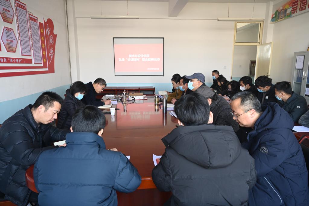 12月8日下午,校长李艳红一行深入美术与设计学院参加弘扬“长征精神”联合教研活动,并与教师进行交流座谈。学校教务处负责人杨建东及学院全体教师参加本次活动。副院长达洁昀主持会议。