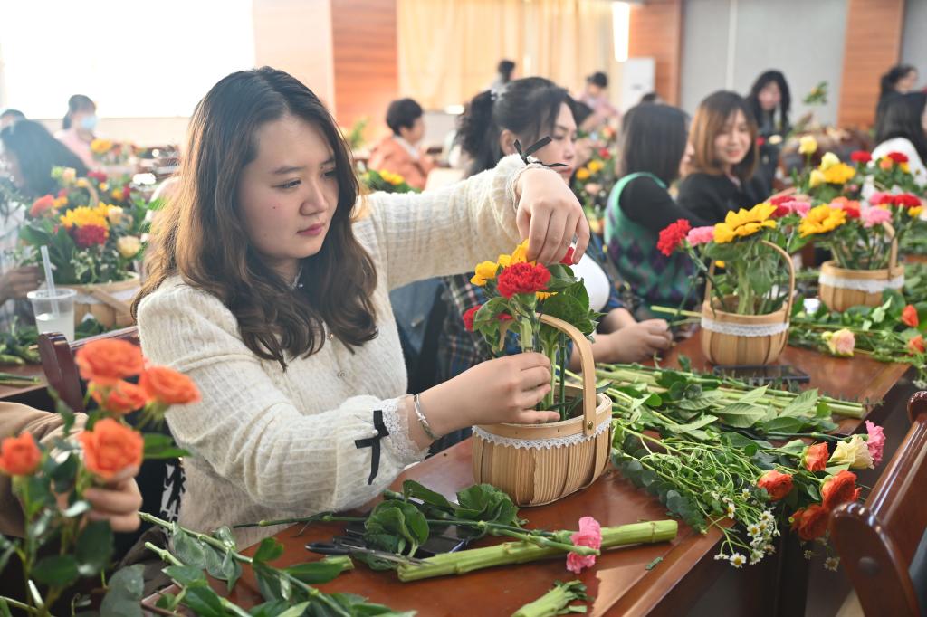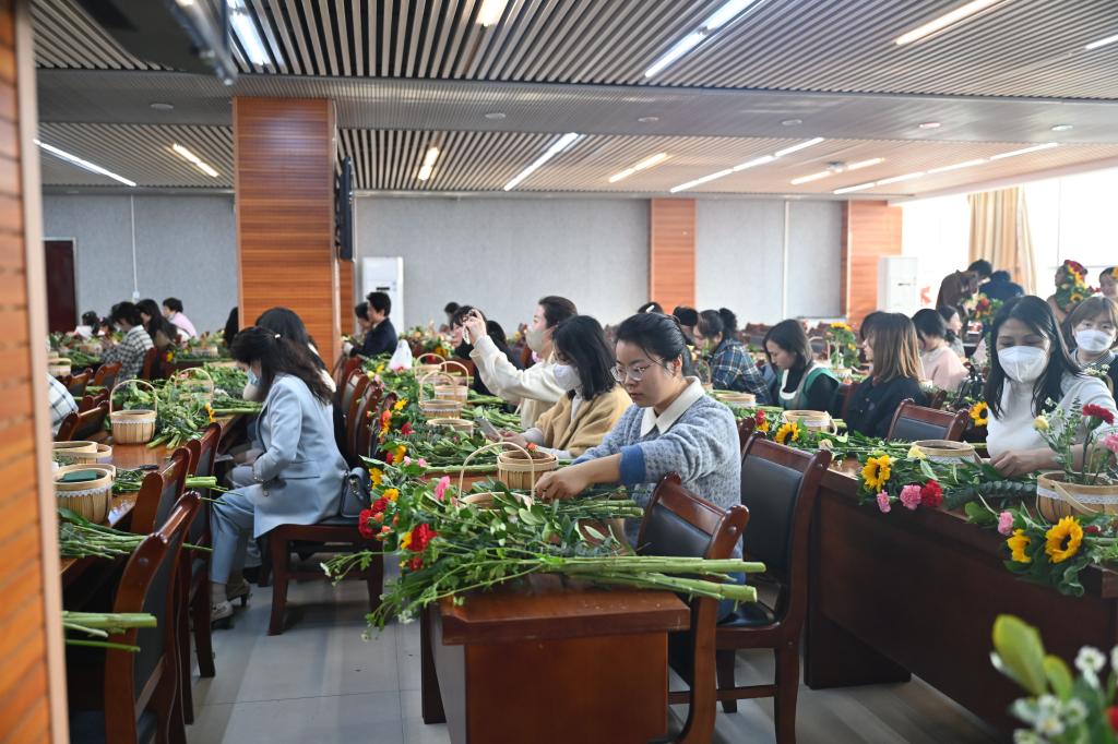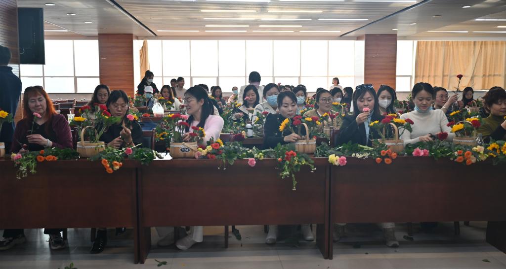 为庆祝第113个“三八”国际劳动妇女节,丰富广大女教职工的业余文化生活,3月8日下午,由beat365工会组织的“花香悦生活·礼赞新时代”主题花艺活动在餐饮楼五楼举行。100多名女教职工参加了此次活动。