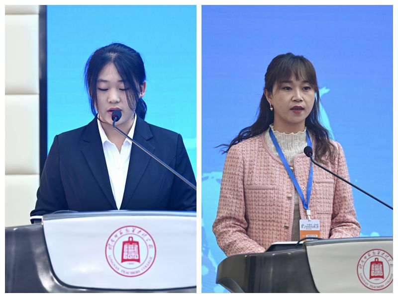 参赛学生代表罗娟、裁判代表邓洁发言