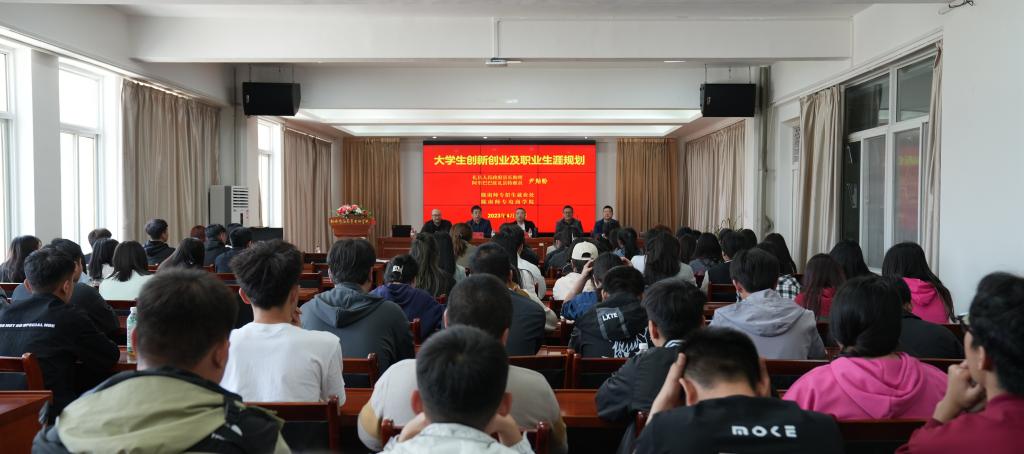 4月10日下午,学校在电商学院三楼多功能厅举行大学生就业与创业指导报告会。此次报告会由阿里巴巴公益基金会驻礼县特派员、礼县人民政府县长助理尹贻盼主讲。学校纪委书记、监察专员镡旭东出席报告会,电子商务学院院长何炜主持报告会。全校各二级学院就业工作领导小组成员、招生就业处相关工作人员以及电子商务学院部分师生共230余人参加了报告会。