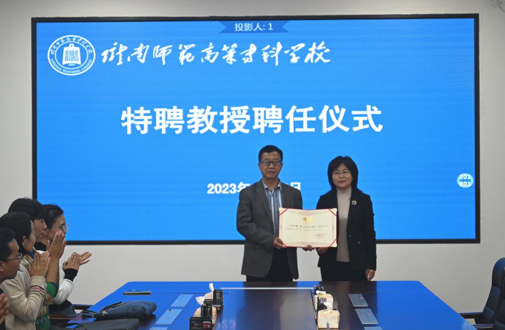 李艳红为雷勇教授颁发了特聘教授聘书。