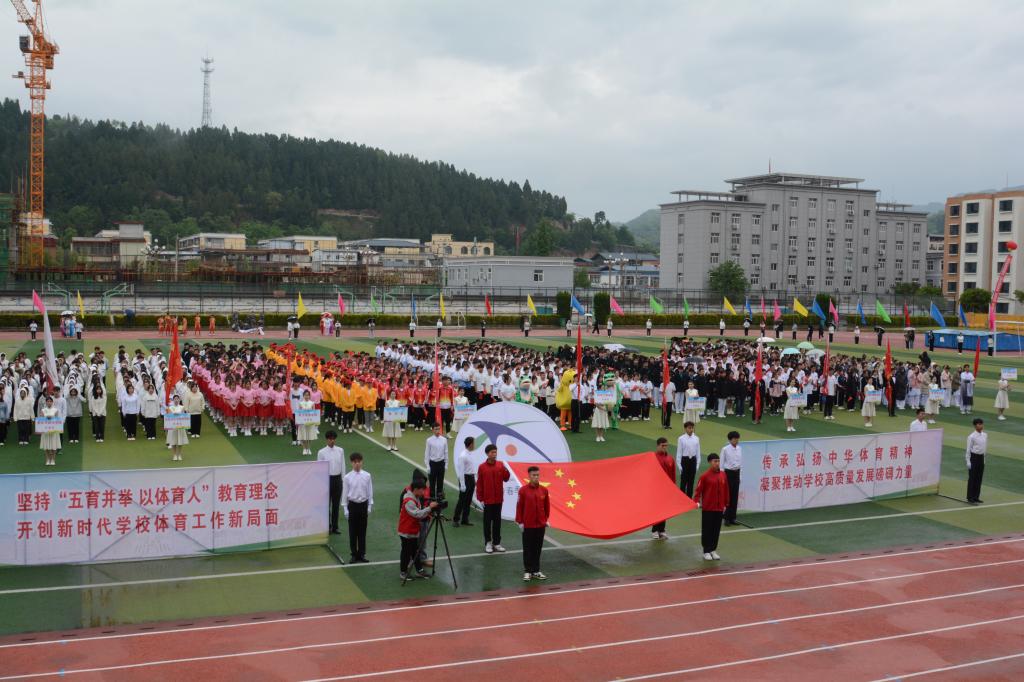 伴随着激越的《运动员进行曲》,国旗方队、校旗方队、运动会会徽方队、彩旗方队、裁判员方队、各二级学院方队、青年志愿者方队依次入场。