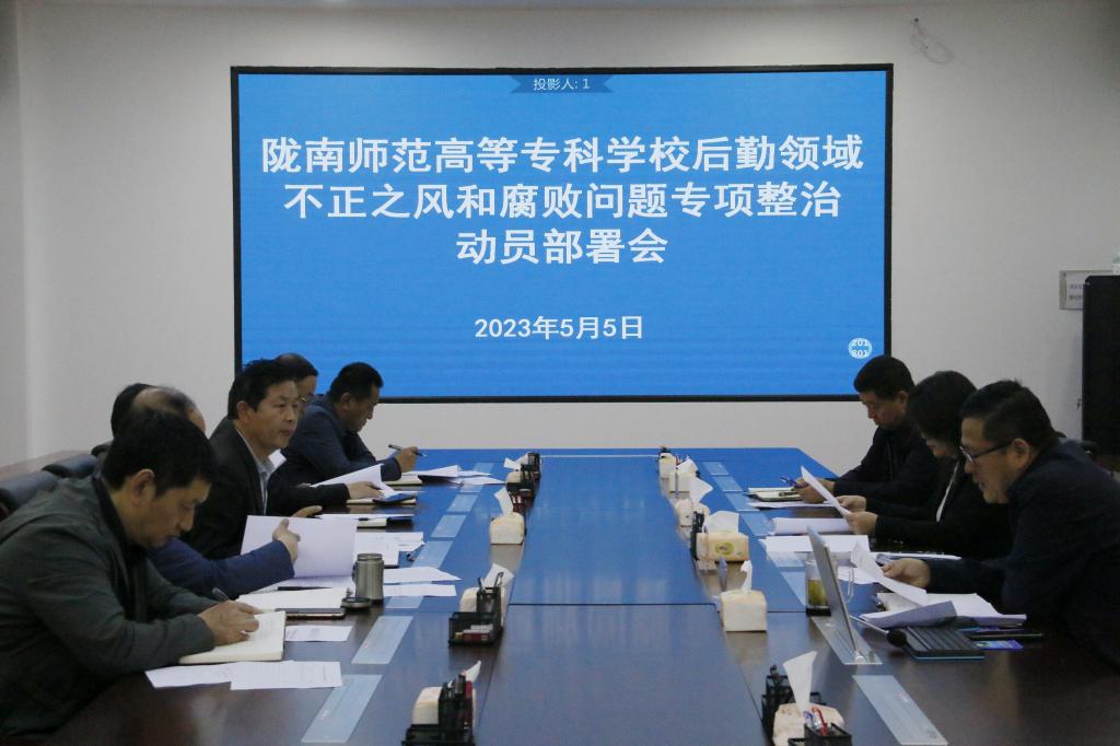 会上,后勤处处长杨鹏飞传达了《全省教育领域不正之风和腐败问题专项整治工作实施方案》和《陇南师范高等专科学校后勤领域不正之风和腐败问题专项整治实施方案》文件精神,安排部署了学校专项整治的重点、整治步骤以及工作要求。