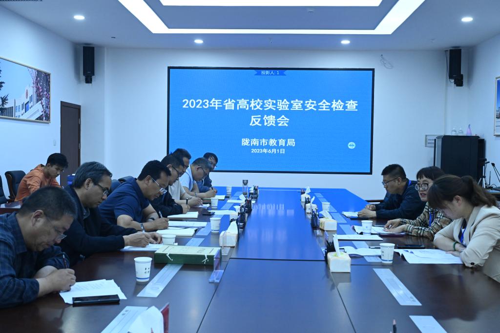 陇南市教育装备办公室主任郑文辉,学校教务处、保卫处、农林技术学院、机电工程学院相关负责人参加本次实验室安全现场检查活动。(教务处)